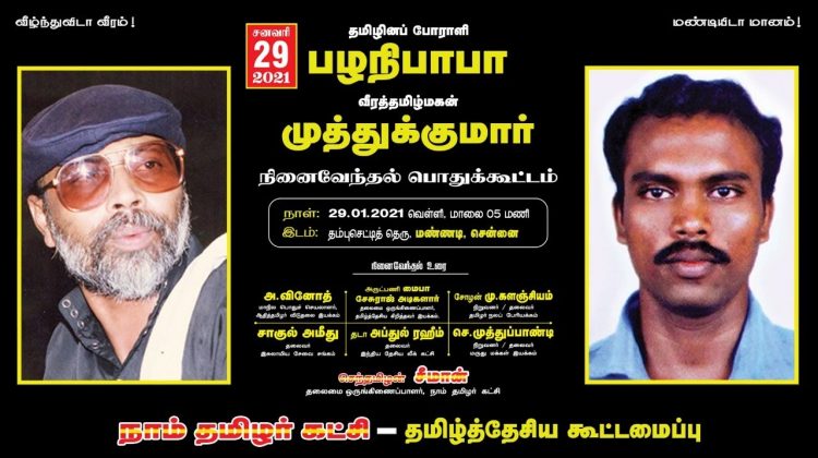 Contact Us To Add Your Business அறிவிப்பு: தமிழினப் போராளி பழநிபாபா மற்றும் வீரத்தமிழ்மகன் முத்துக்குமார் நினைவேந்தல் பொதுக்கூட்டம் – சென்னை (மண்ணடி) | நாம் தமிழர் கட்சி தமிழினப்