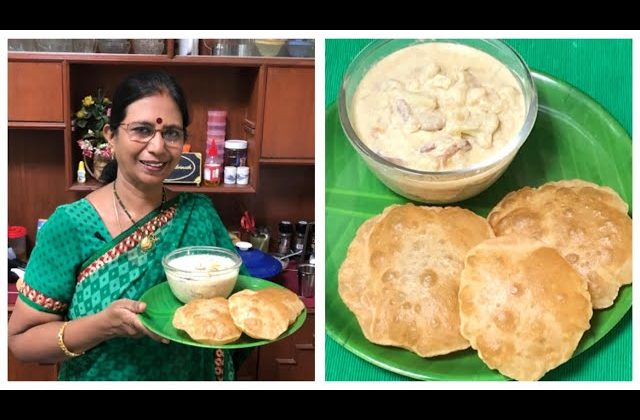 பூரி, குருமா/ Puffy Poori with tips , Cauliflower paneer kurma / கரகரப்பான பூரி