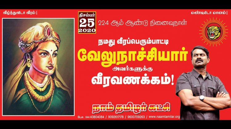 Contact Us To Add Your Business அறிவிப்பு: தமிழ்ப் பேரினத்தின் வீரப்பெரும்பாட்டி வேலுநாச்சியாரின் 224ஆம் ஆண்டு நினைவுநாளான இன்று 25-12-2020 காலை 10 மணியளவில் தலைமை அலுவலகம், இராவணன் குடிலில்